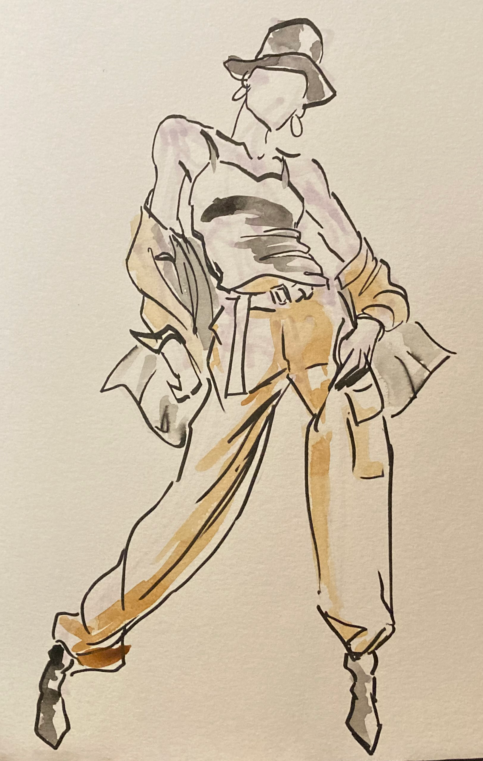 Class to Character exercise - The drawing on the left is a sketch from class, the drawing on the right is Anne from Amphibia using the sketch as a pose reference.