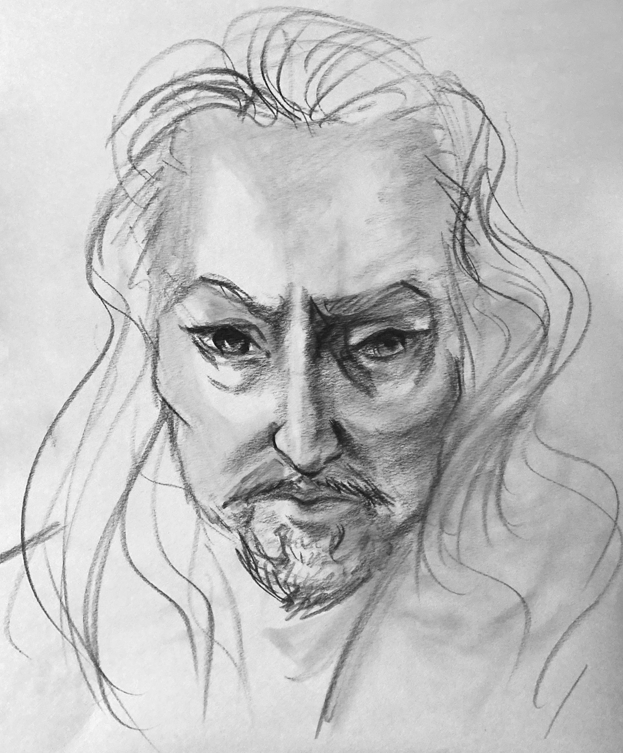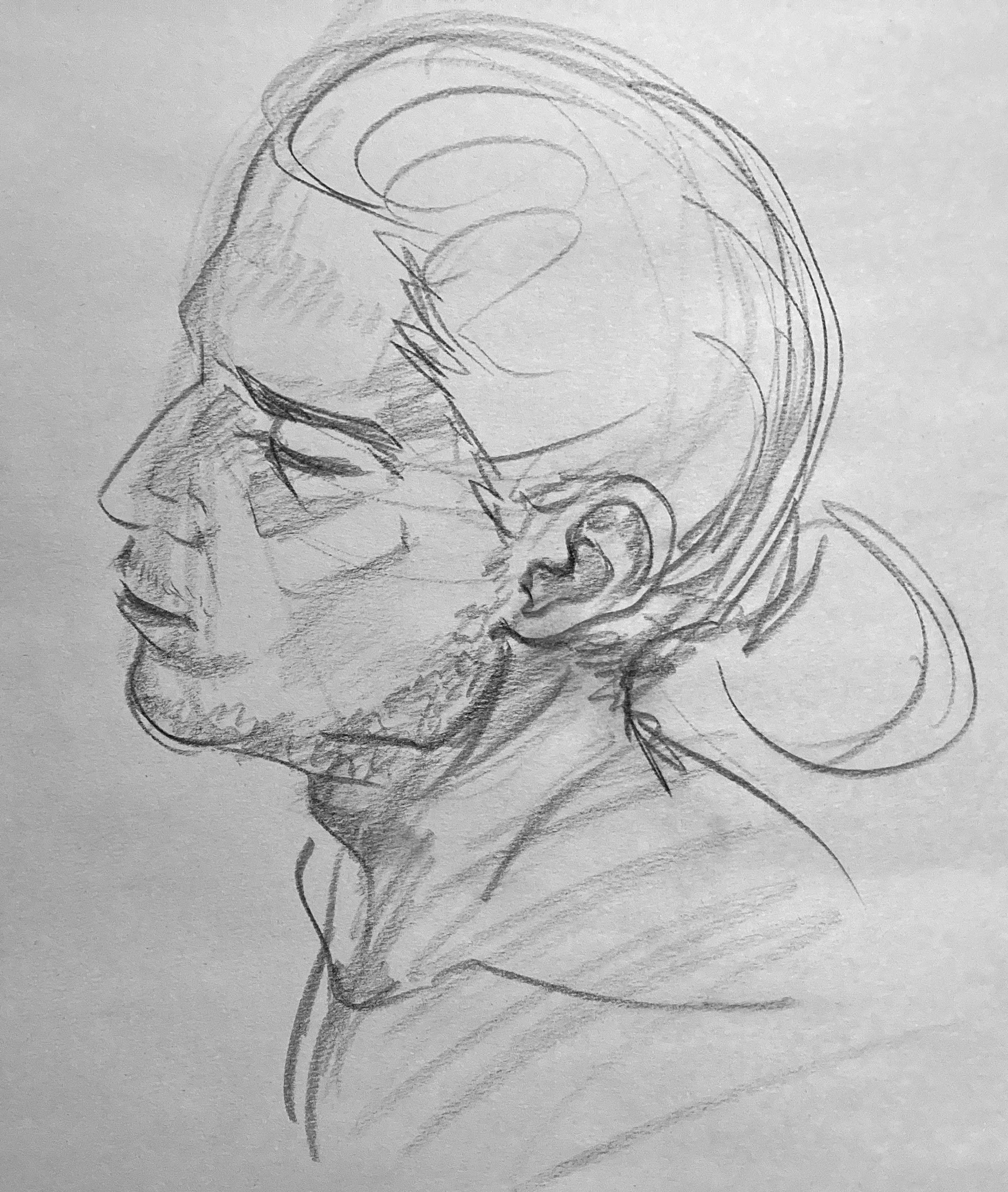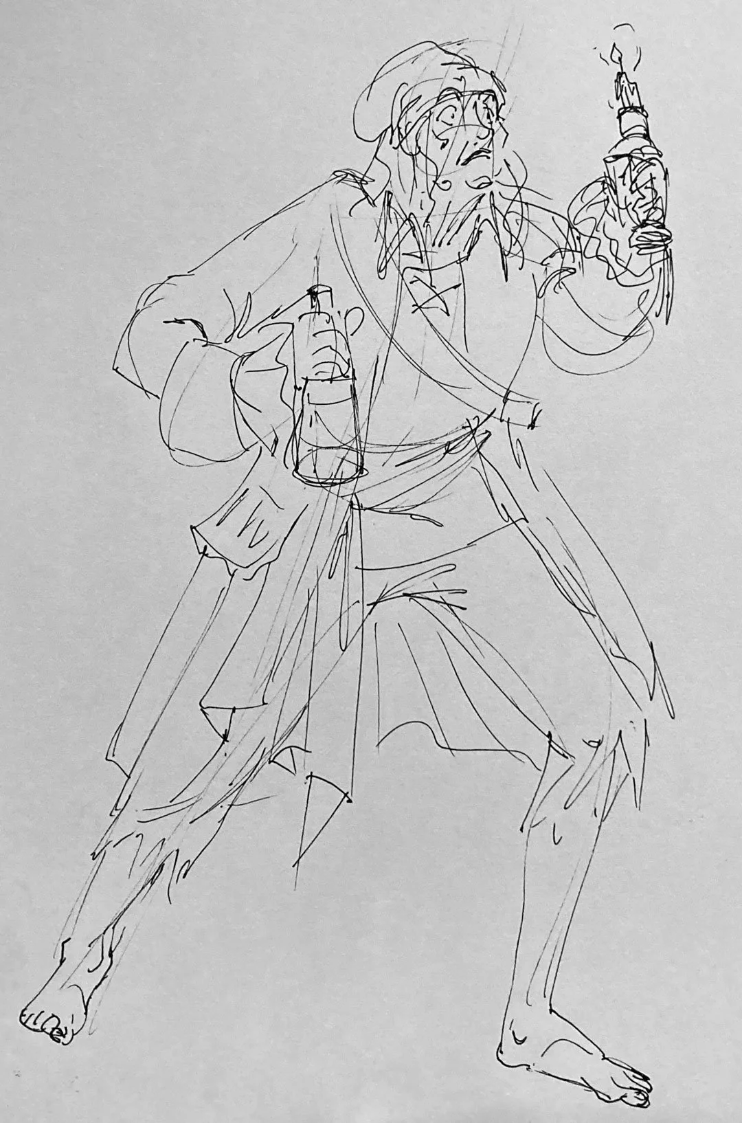 Class to Character exercise - The drawing on the left is a sketch from class, the drawing on the right is King from The Owl House using the sketch as a pose reference.